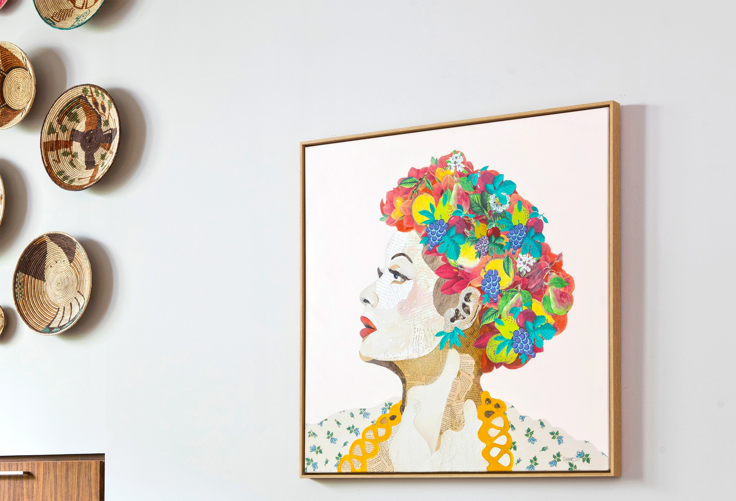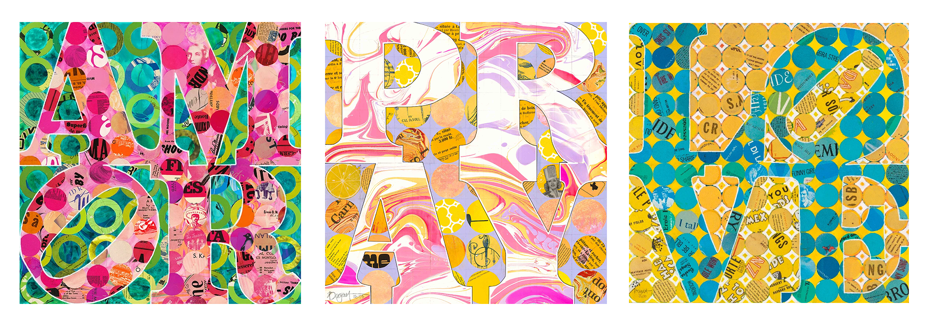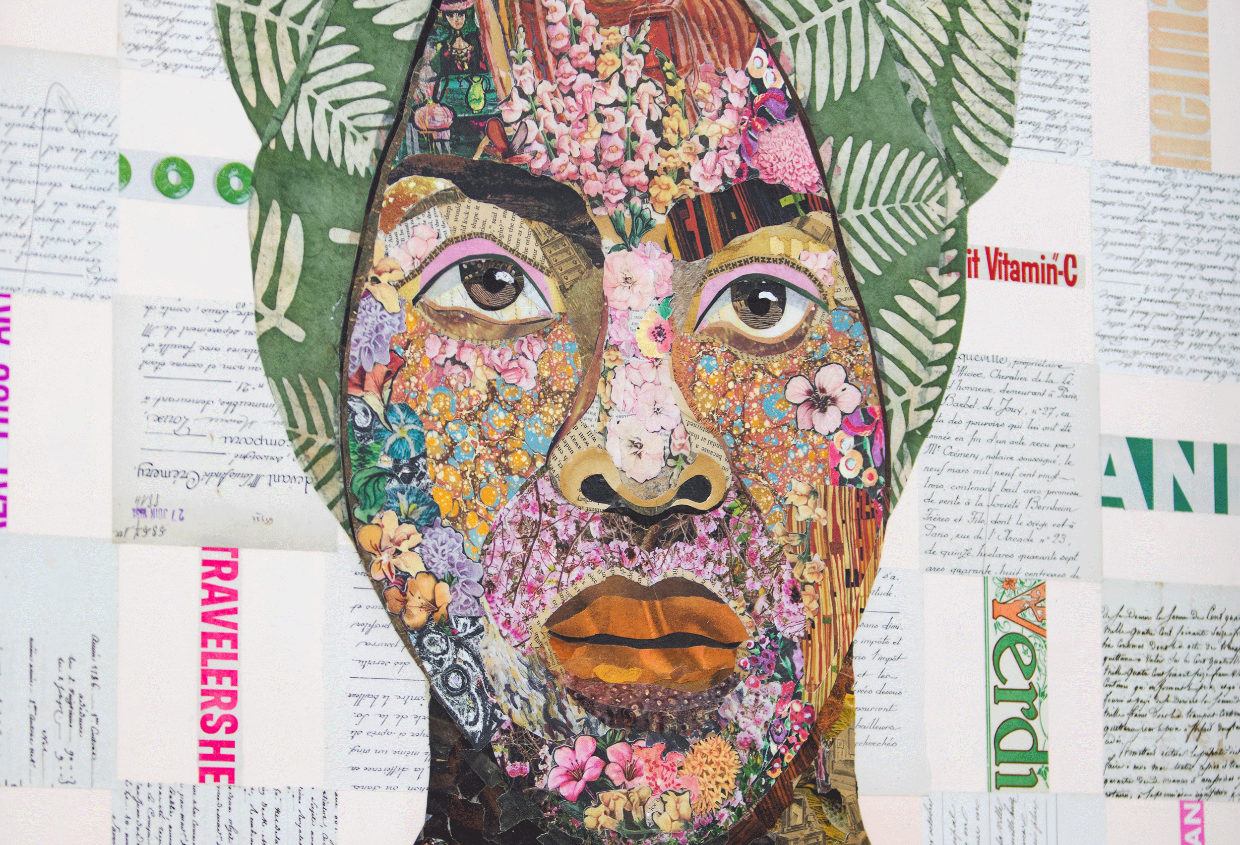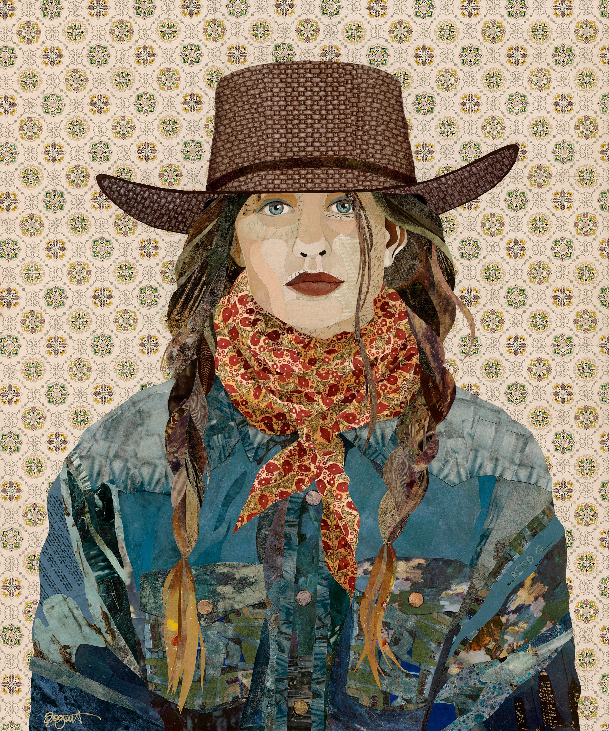 Brenda Bogart is a Dallas artist renowned for her compelling and conversation-starting collage work and paintings of famous, historical figures from Lincoln to Einstein. A visit to her airy studio readily reveals her inspiration. It is filled with a fascinating collection of centuries old handwritten letters, colorful handmade papers from around the world, plus various eclectic objects she has collected during her travels. She holds a degree in Interior Design from TCU and studied painting and drawing at SMU extensively under Mary Vernon and Barnaby Fitzgerald. After a career in interior design working for Wilson & Associates, then operating her own firm in the Dallas area, she turned to art full time in 2006. Her latest passion has been hosting collaborative collage workshops to benefit Jubilee Park and Community Center, a group who has revitalized a neighborhood in Southeast Dallas.